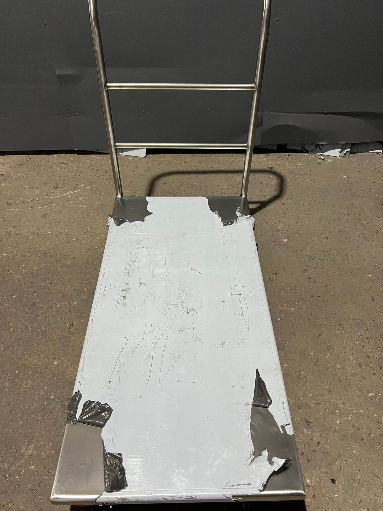 Carro/zorra reforzado 700kgs en acero inoxidable AISI304. Fabricado a medida para laboratorios Raffo.