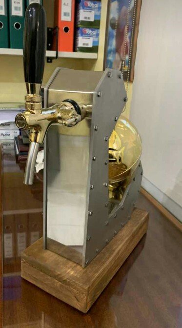 Fabricación de pilón chopera “futbol” en acero inoxidable funcional para cerveza. Fabricada para el futbolista Mauro Bogado.