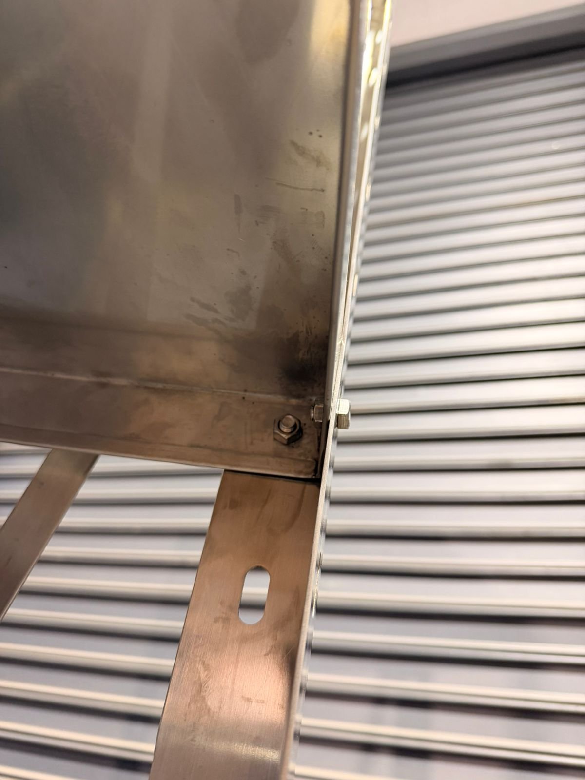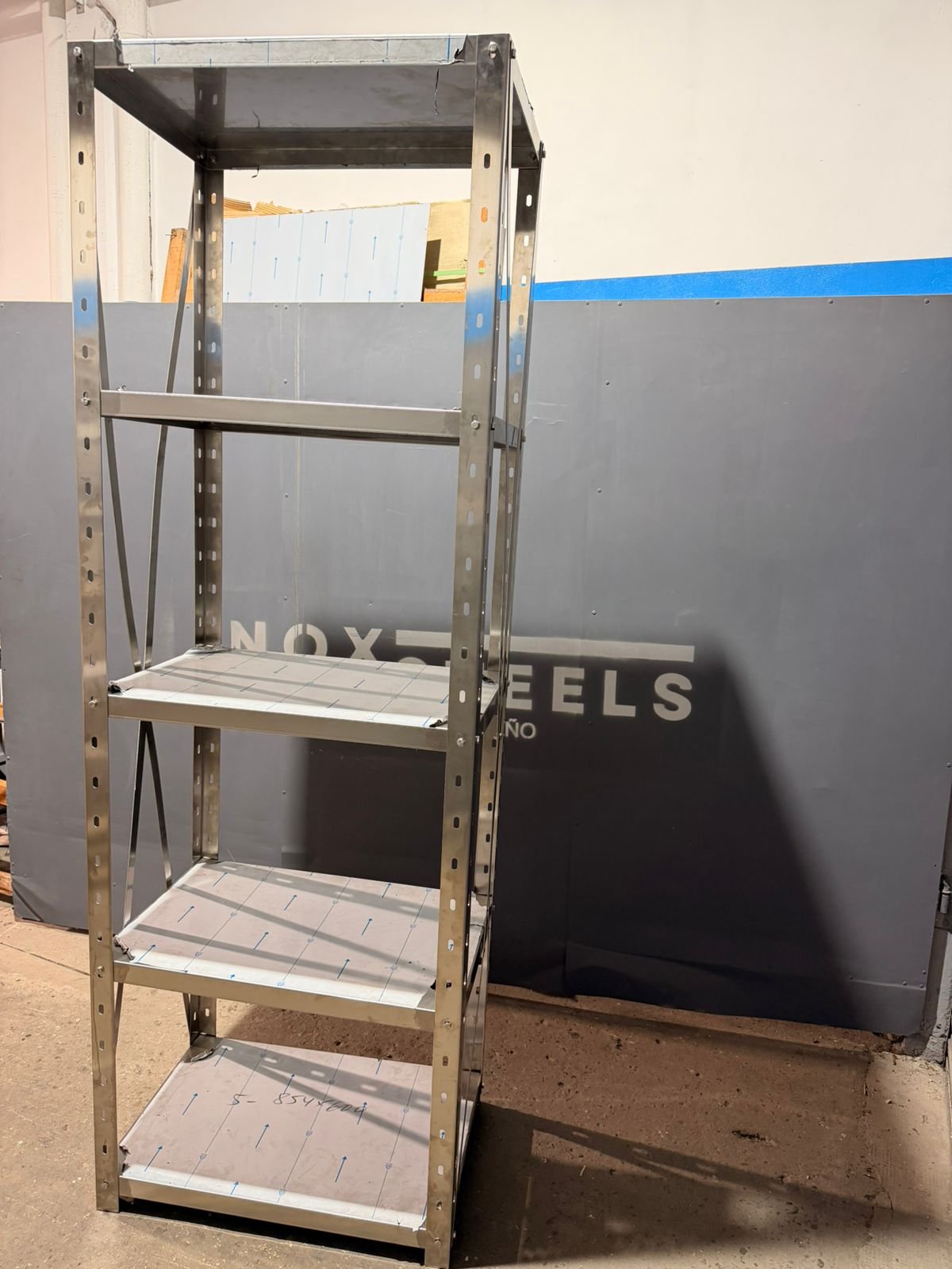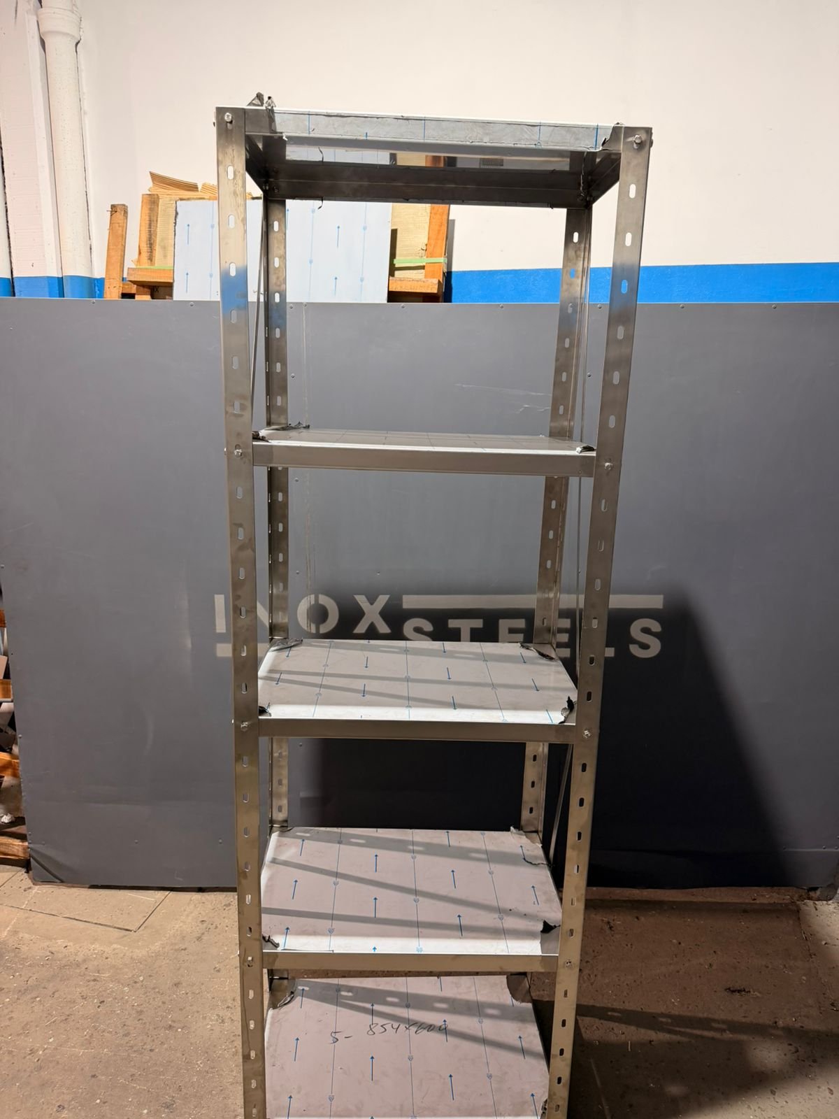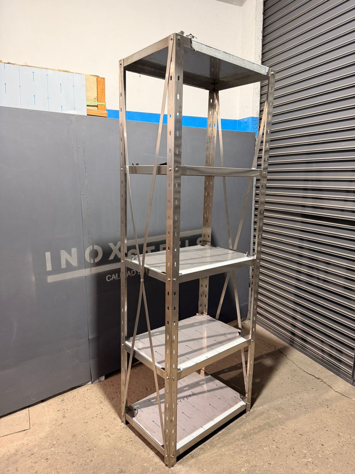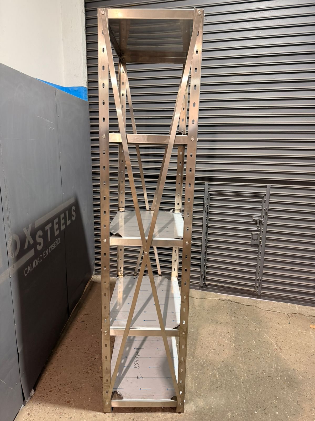 Estantería de diseño “industrial” en acero inoxidable fabricada a medida para marca de ropa BOLIVIA. Estantes resistentes en esp.: 1,5mm todo en AISI304. Sin filos.