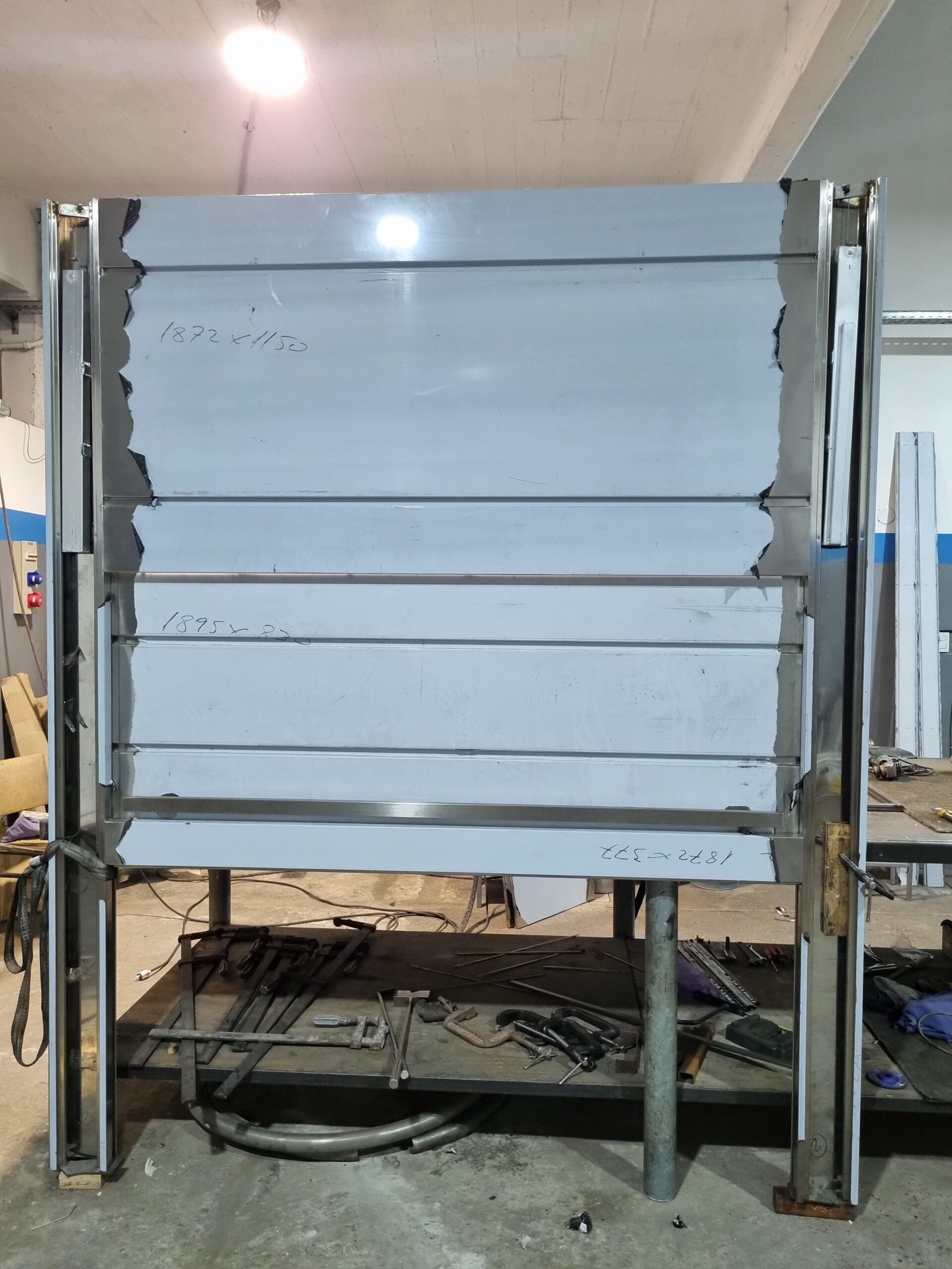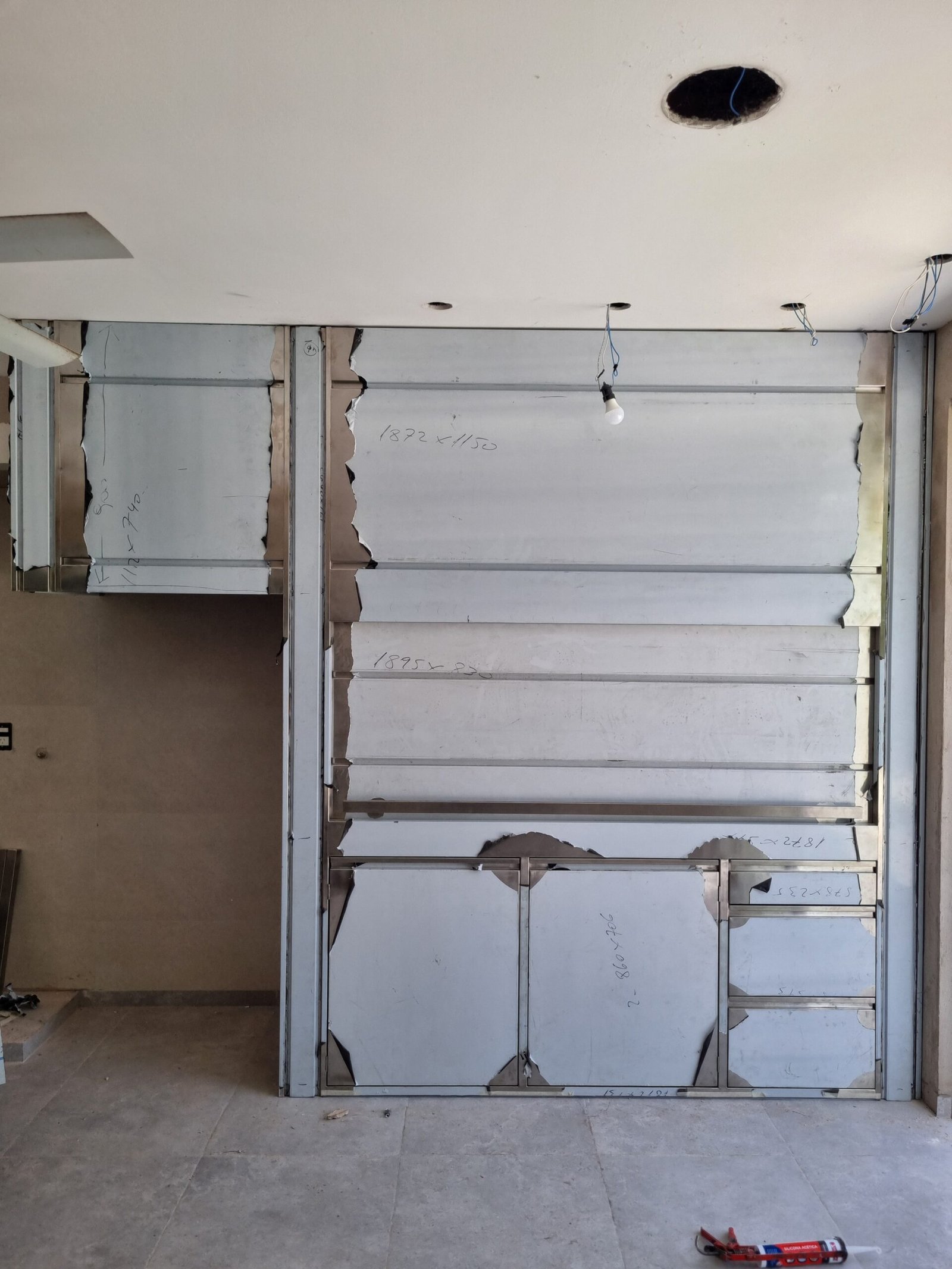 Fabricación y colocación en obra de frente de parrilla en acero inoxidable moderno con cajonera. Además se fabrico y coloco un revestimiento cubre campana a juego con el frente. Puerta con abertura tipo guillotina con sistema de contrapesos. Todo a medida y pedido de nuestro cliente.