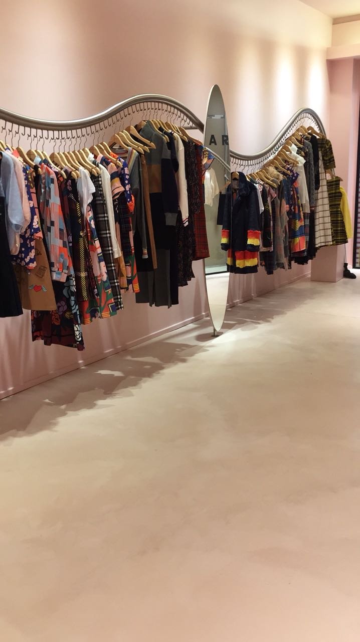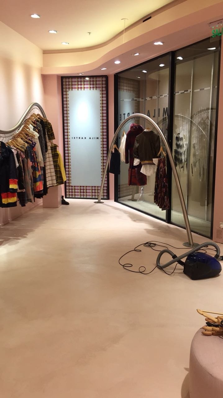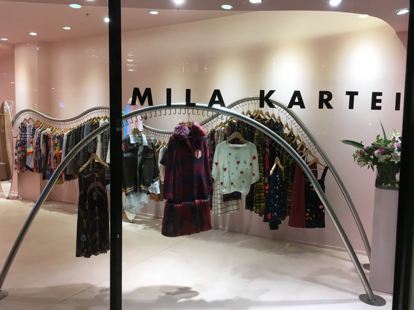 Percheros de diseño en caño redondo de acero inoxidable para local de ropa MILA KARTEI.