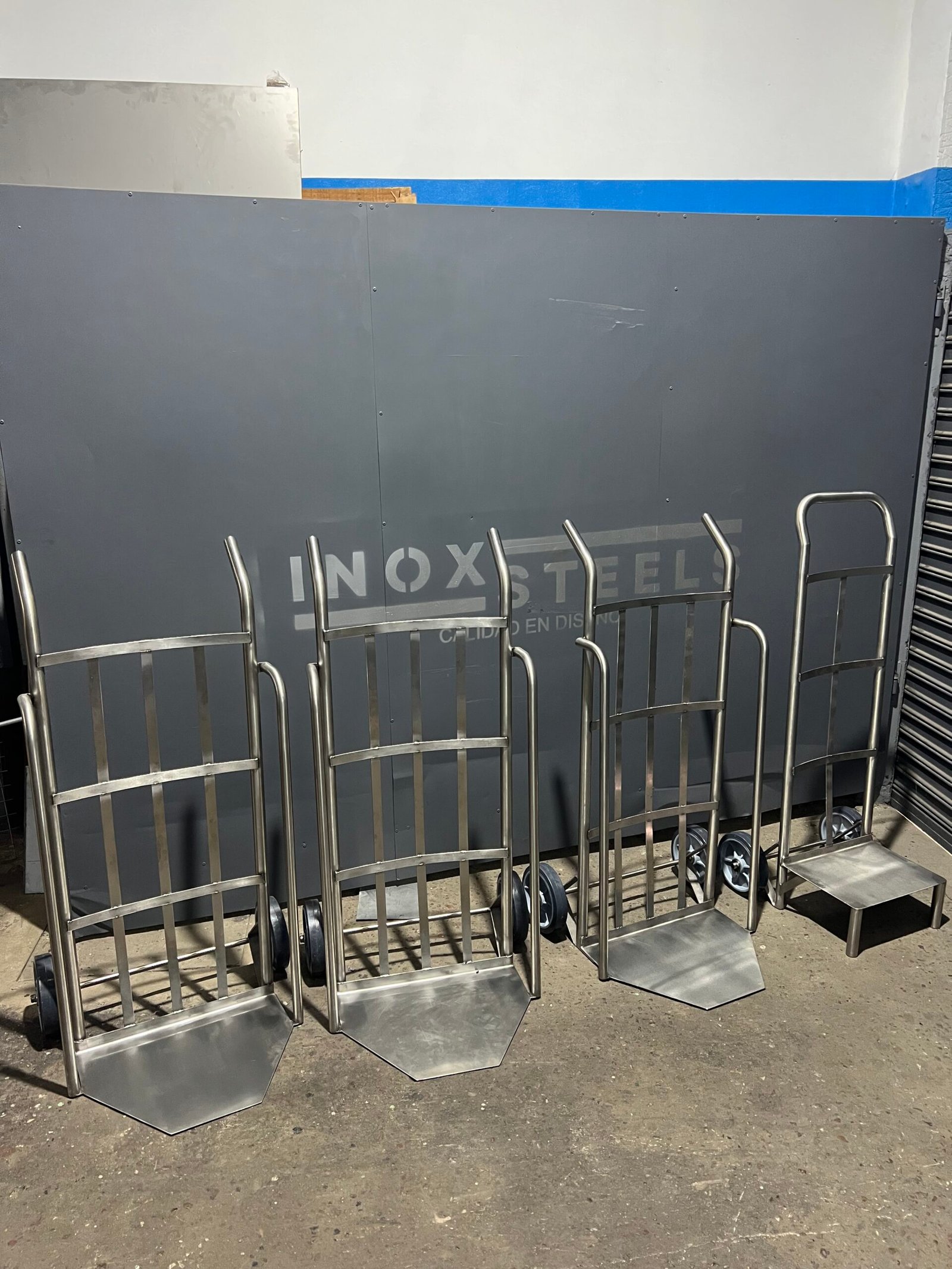 Zorras/carretas industriales en acero inoxidable. Máxima resistencia y durabilidad. Ideales para industria alimenticia. Fabricadas para Cremolatti